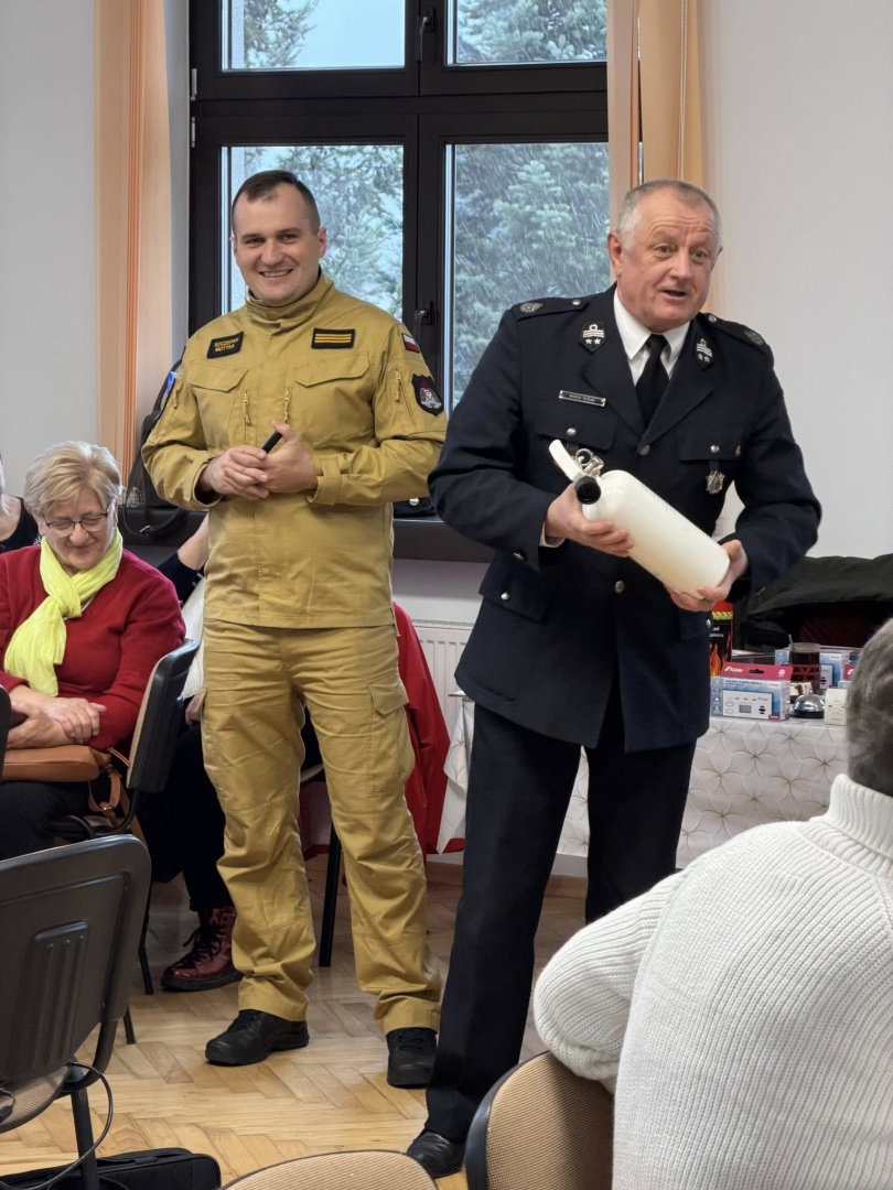 Podczas spotkania omówiono najważniejsze zagrożenia wynikające z emisji tlenku węgla – tzw. „cichego zabójcy” – oraz przyczyny i skutki pożarów w budynkach mieszkalnych. Strażacy przekazali uczestnikom praktyczne wskazówki dotyczące zapobiegania niebezpiecznym sytuacjom, prawidłowego użytkowania urządzeń grzewczych oraz właściwego reagowania w przypadku zagrożenia. Spotkanie odbyło się w ramach ogólnopolskiej kampanii profilaktycznej „Czujka na straży Twojego bezpieczeństwa”, której celem jest podnoszenie świadomości społecznej oraz zapobieganie tragicznym zdarzeniom związanym z zatruciami tlenkiem węgla i pożarami.