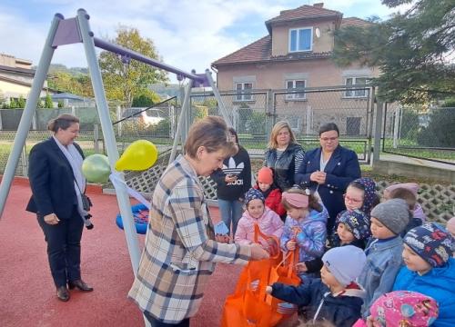 Przywitała nas delegacja dzieci z całego przedszkola które otrzymały podarunki. Radość dzieci z przedszkola udzieliła się wszystkim przybyłym gościom, nasze pociechy jako pierwsze mogły przetestować nowe atrakcje i oddać się wspanialej zabawie. Plac Zabaw powstał przy udziale środków pochodzących z Programu PROW 2014-2020 pozyskany przez Stowarzyszenie LGD „Żywiecki Raj”, grantobiorcą i realizatorem było Stowarzyszenie „Mała Szwajcaria” przy wkładzie własnym Rady Rodziców Przedszkola i przy udziale Rodziny Państwa Bernadetty i Łukasza Kliś.