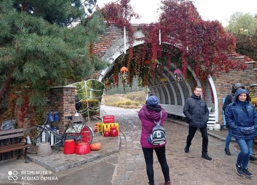 Niestety pogoda nas nie rozpieszczała. W chłodzie i lekkiej mżawce z parasolkami zwiedzaliśmy piękny w jesiennej szacie ogród. Podziwialiśmy piękne kwiaty, wystrojone chatki, szklarnie z kaktusami, tarasy widokowe i różnego typu dzieła artystyczne.