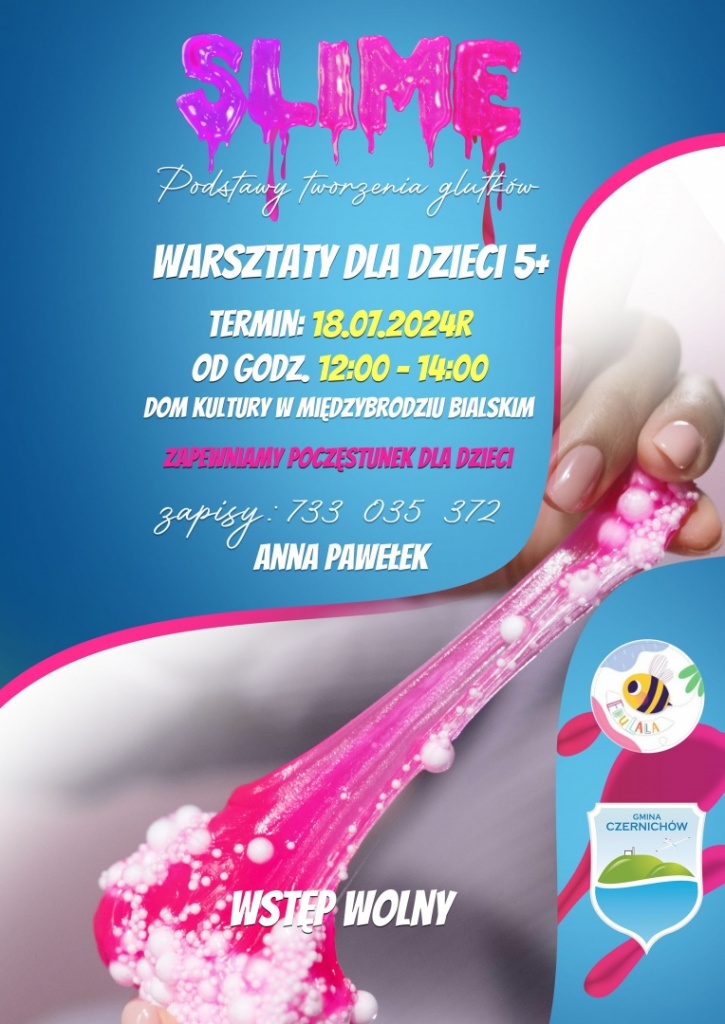 Zapraszam na darmowe warsztaty tworzenia slime'u dla dzieci w wieku 5+. Podstawy tworzenia glutów.
